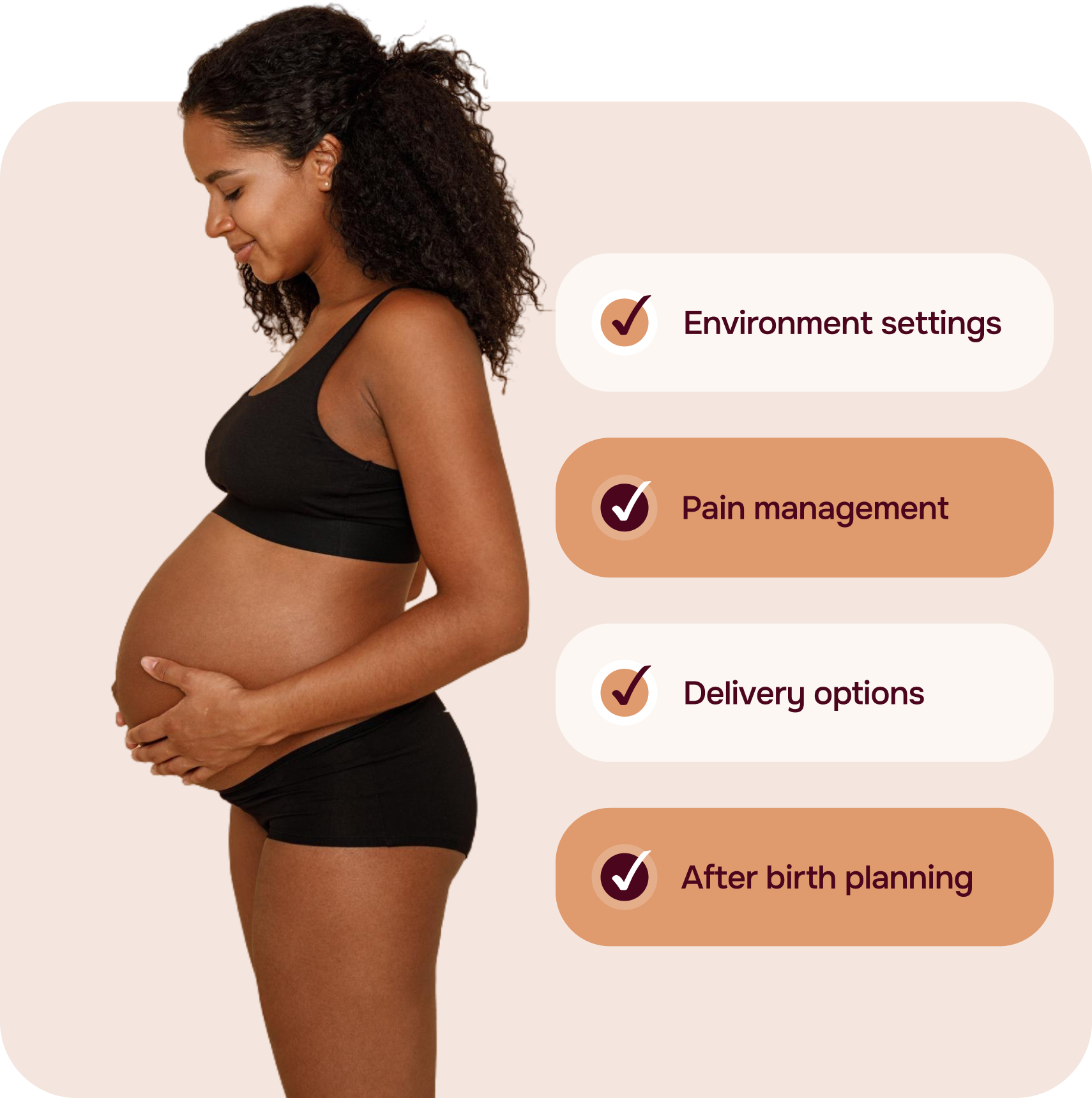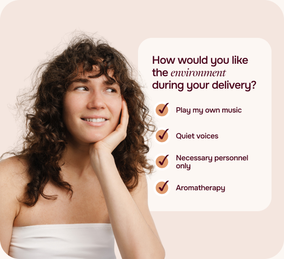 Answer a series of thoughtful questions that communicate your personal preferences and needs, customizing your birth plan.